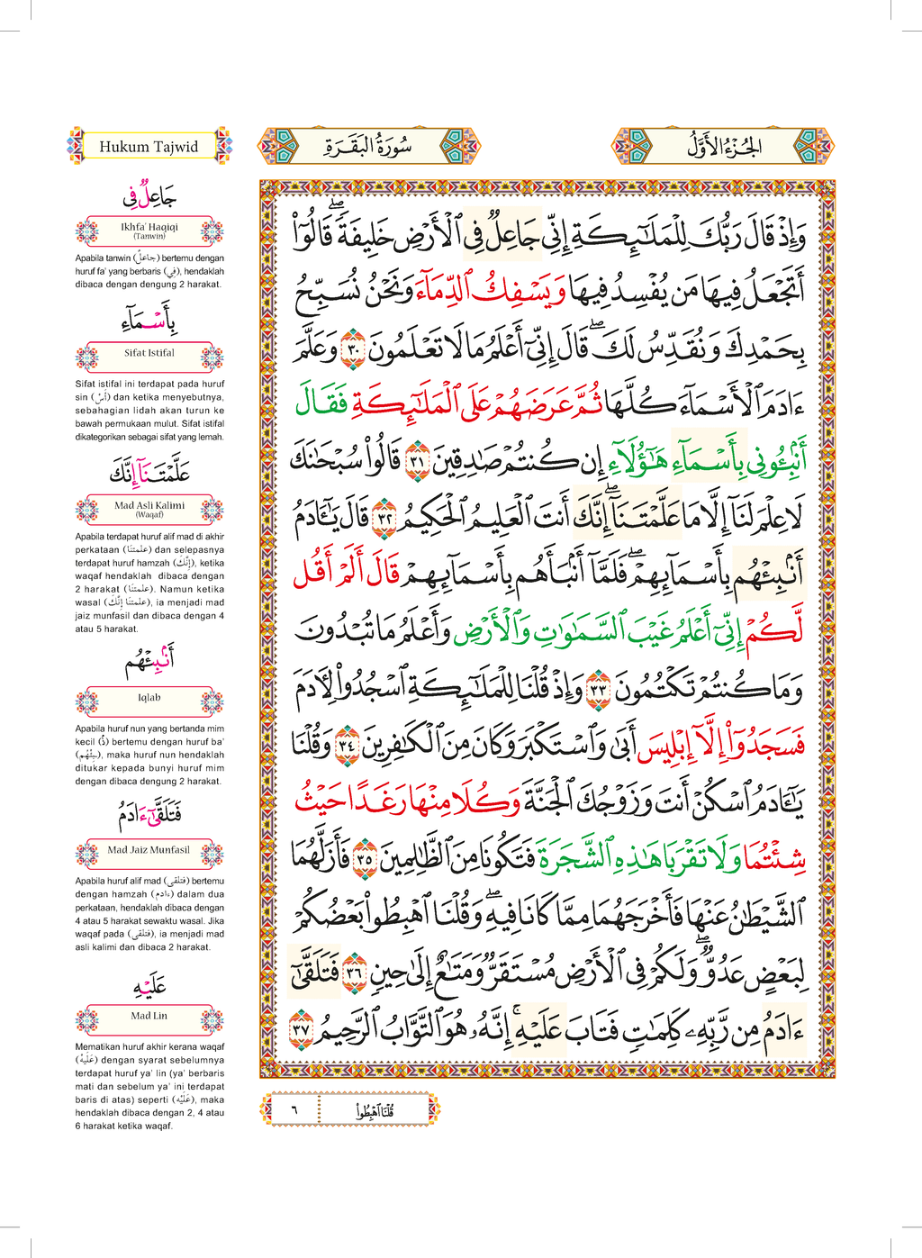 • Diwarnakan dengan warna kuning yang menitikberatkan 6 elemen penting iaitu Makhraj Huruf, Sifat Huruf, Hukum Tajwid, Tanda Waqaf, Bentuk Penulisan al-Quran & Cara bacaan khusus.