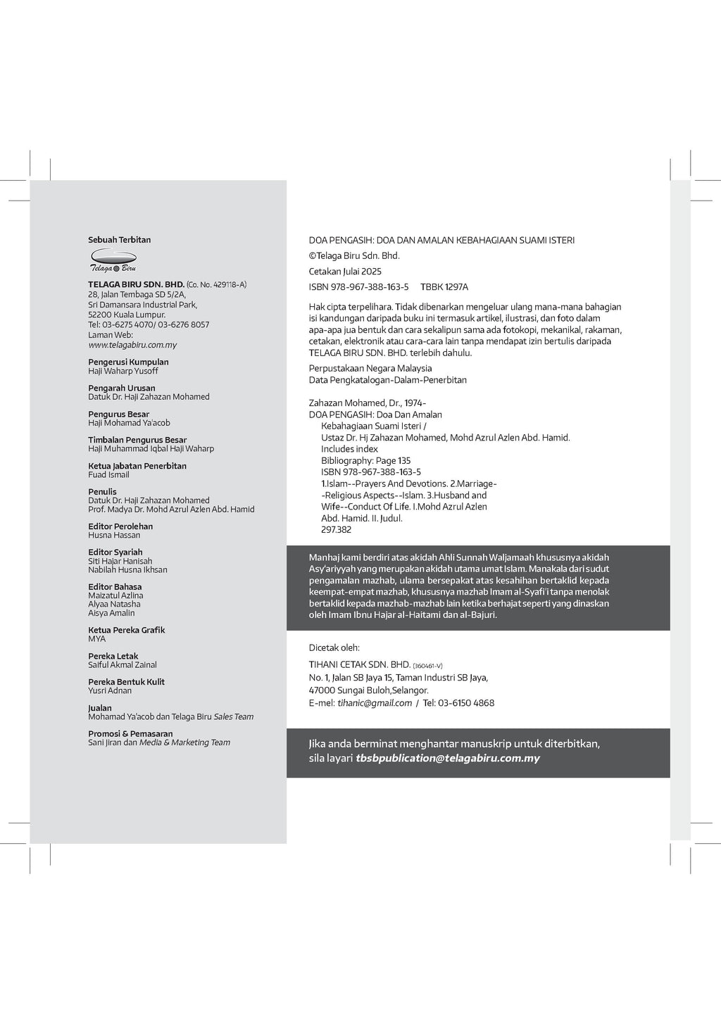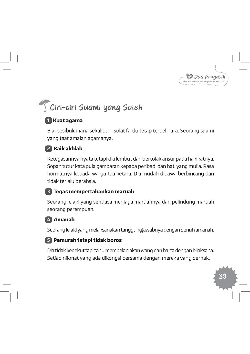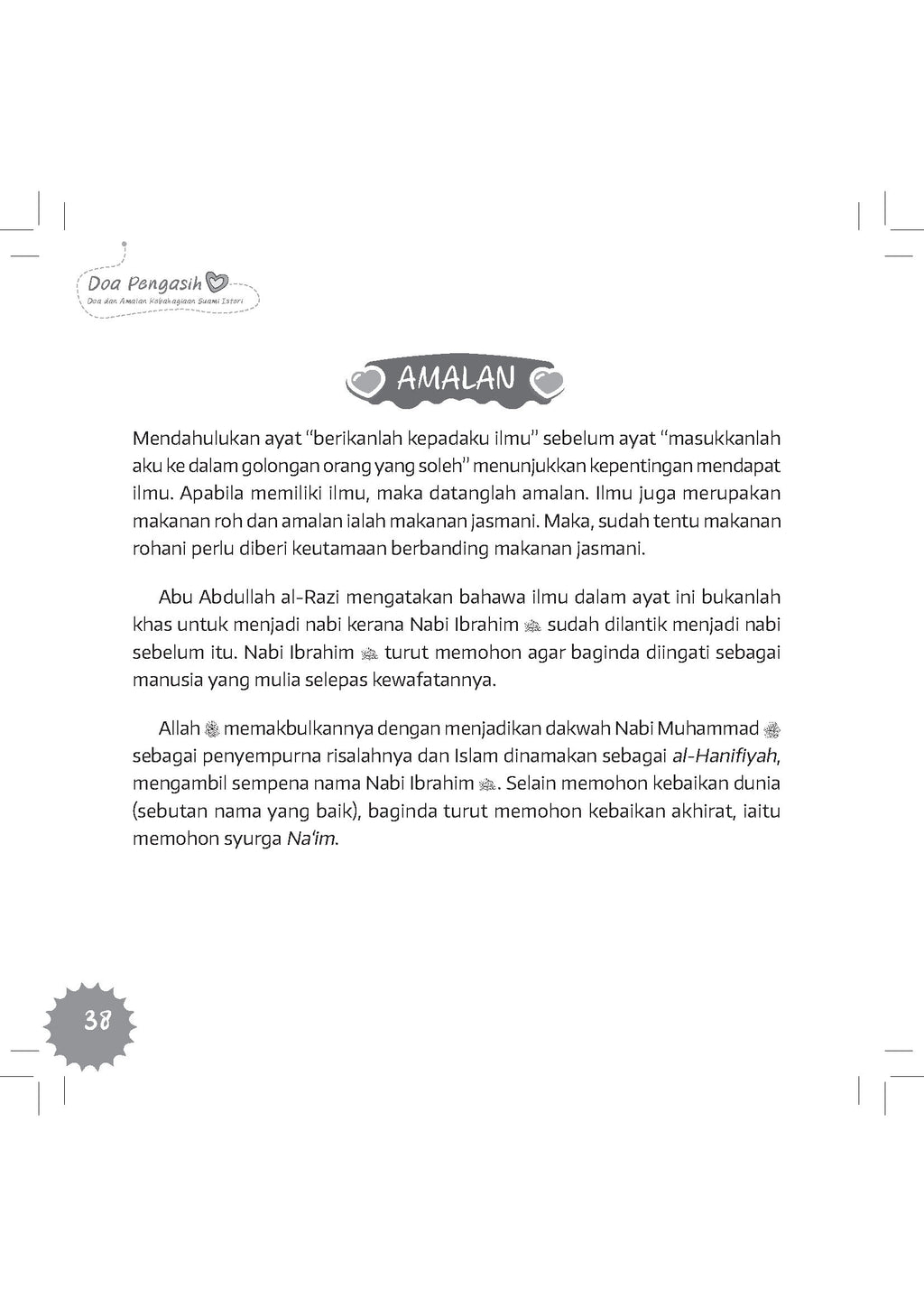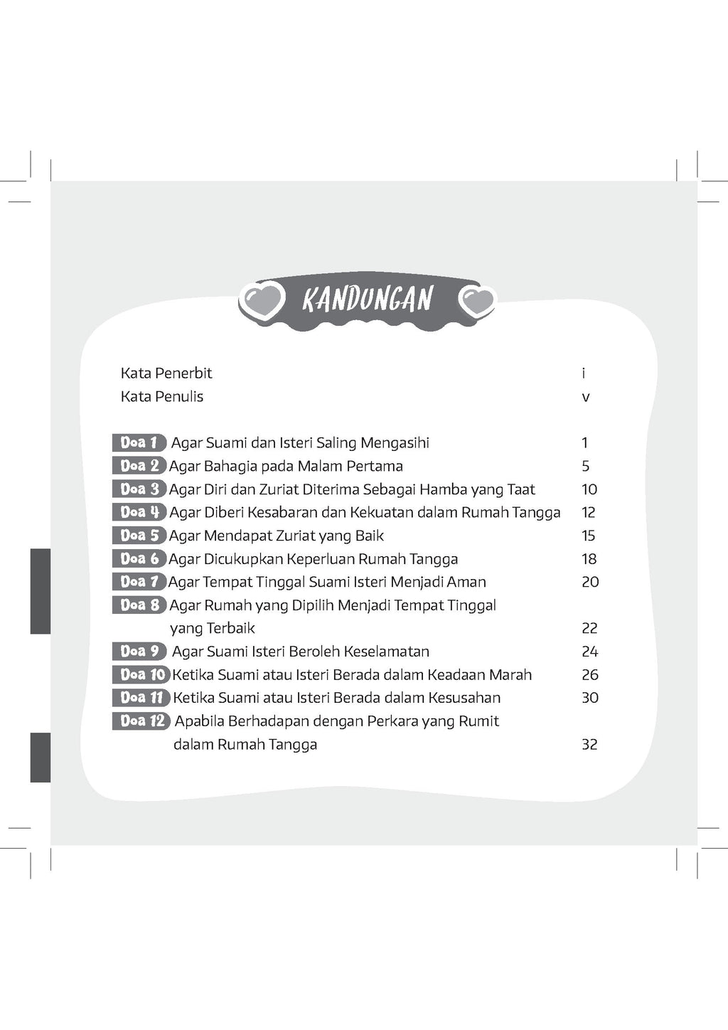 • Buku ini menampilkan himpunan doa, amalan, kaifiat, tip dan petua yang harus diamalkan untuk mengembalikan kegemilangan zaman pengantin tersebut.