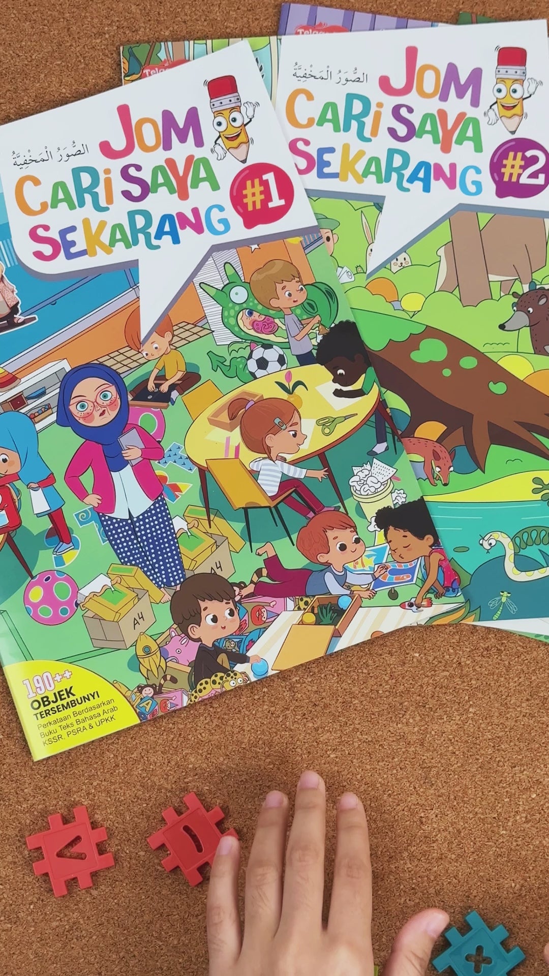Buku Jom Cari Saya Sekarang #3 mempunyai 190 lebih objek tersembunyi dan terdapat perkataan berdasarkan Buku Teks Bahasa Arab KSSR, PSRA & UPKK.