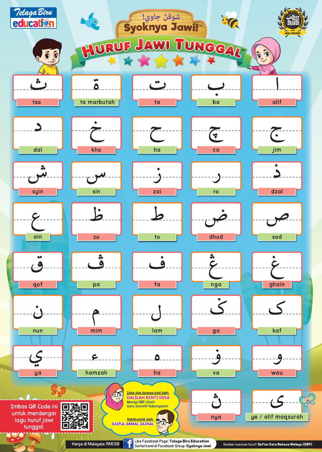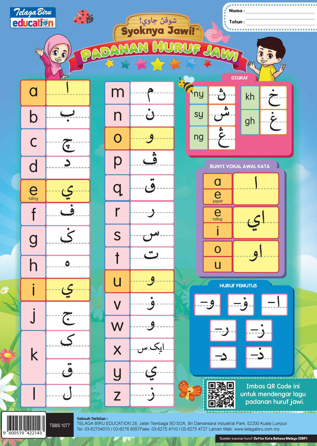 Muka belakang : Padanan huruf Rumi kepada Jawi dan huruf Pemutus.