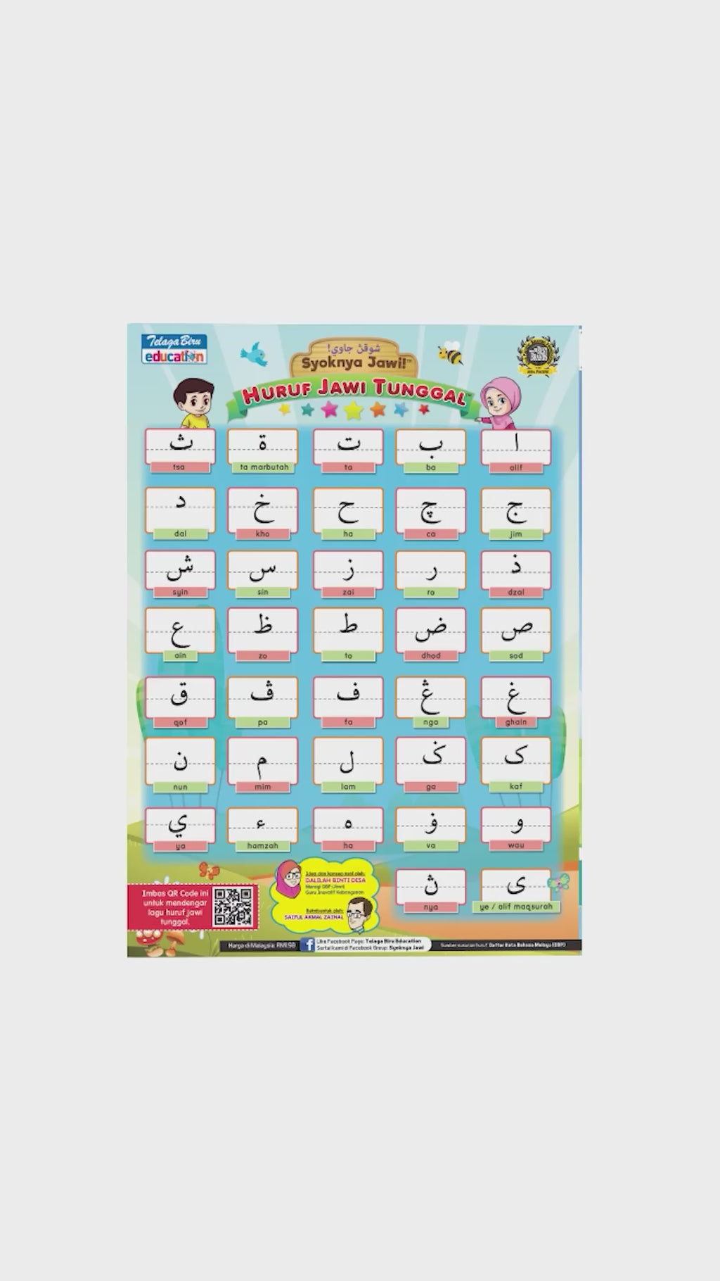 Buku SYOKNYA JAWI- KAD HURUF JAWI TUNGGAL & PADANAN HURUF JAWI merupakan bahan bantu mengajar yang paling pantas dan berkesan untuk membantu murid menulis Jawi. Kad ini mengandungi wajah huruf selain menepati susunan huruf berdasarkan susunan abjad rumi untuk memudahkan murid mencari huruf dengan mudah. Kad ini juga sangat sesuai dijadikan sebagai bahan rujukan kepada murid untuk mempelajari tulisan Jawi dengan mudah dan pantas.