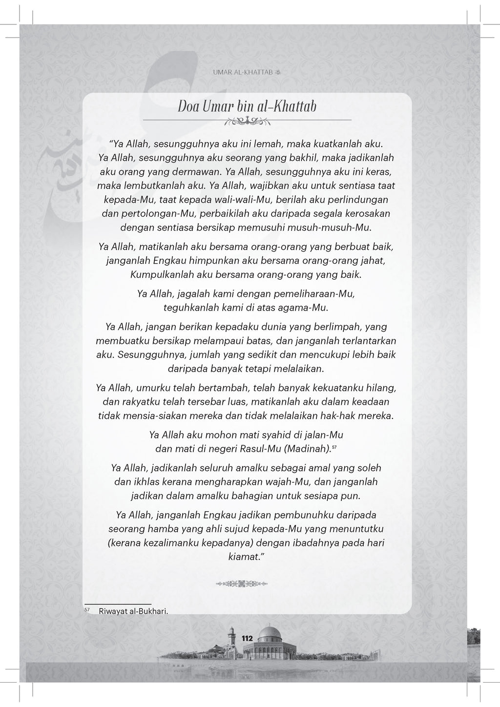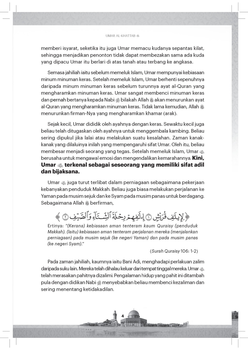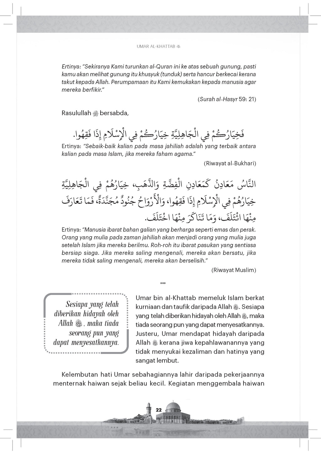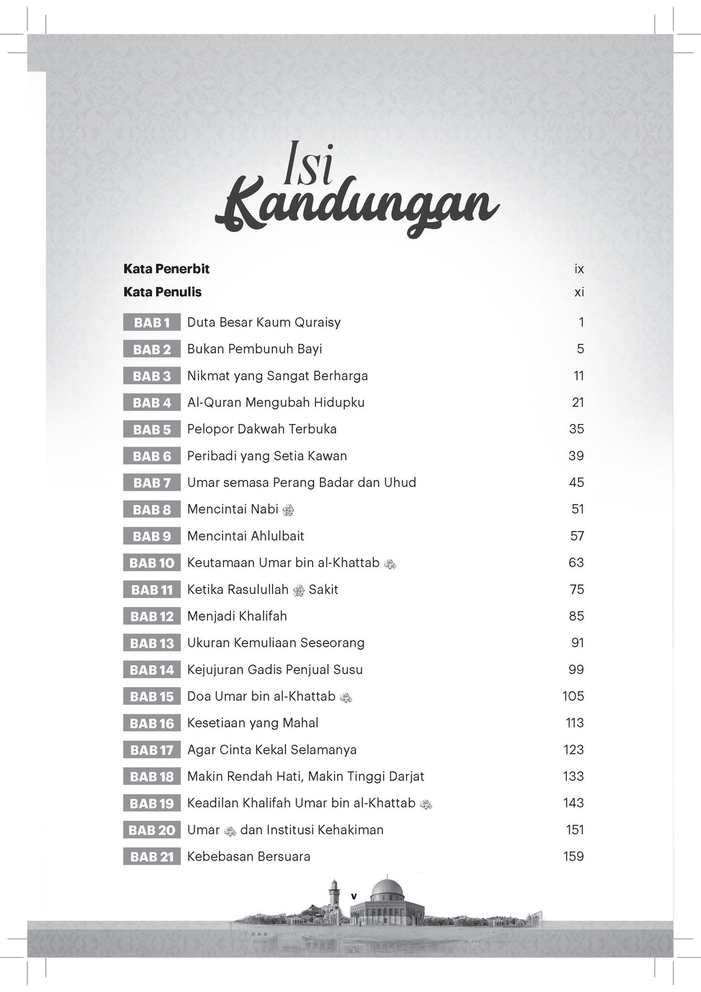 • Buku ini hadir sebagai usaha untuk memperkenalkan peribadi agung Umar al-Khattab dengan cara yang mudah didekati oleh pembaca masa ini.