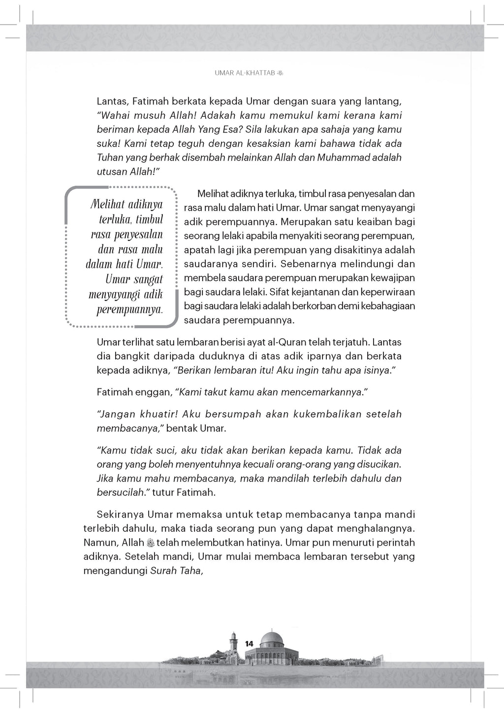 Terdapat banyak lagi kisah menarik mengenai Umar al-Khattab untuk ditelusuri. Siri Khulafa’ al-Rasyidin Umar al-Khattab ini akan membawa pembaca untuk lebih memahami kehidupan dan perjuangan beliau dengan lebih mendalam!