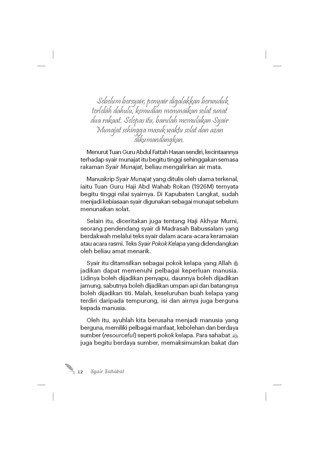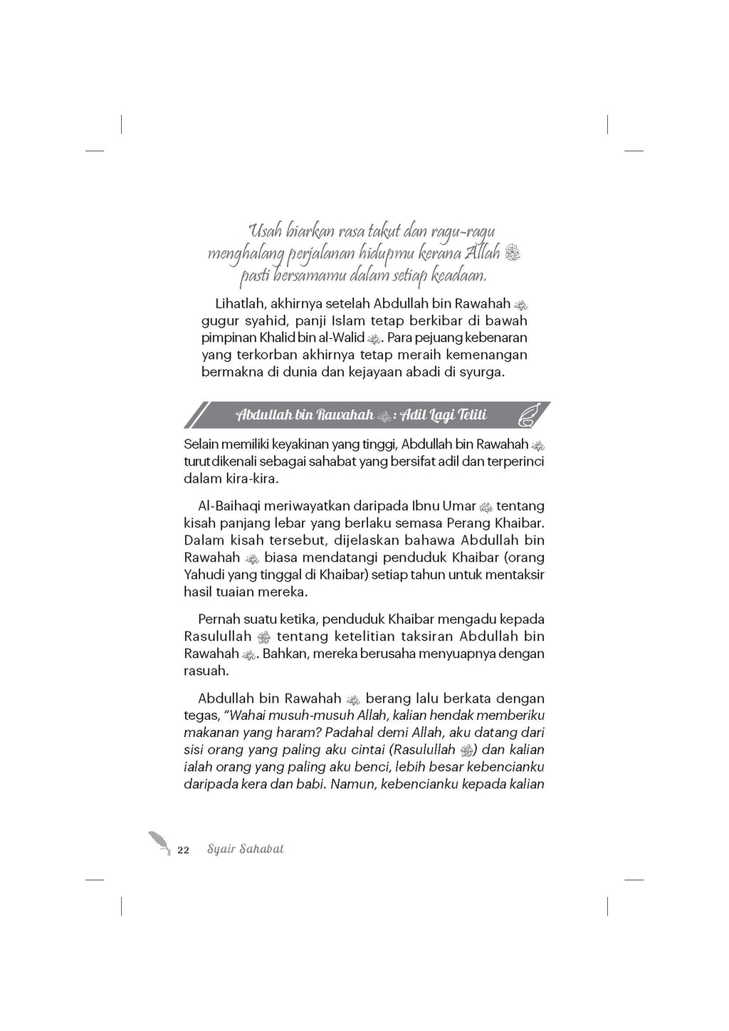 - Buku ini disusun dengan penuh cermat dan mengangkat pelbagai tema syair sahabat.