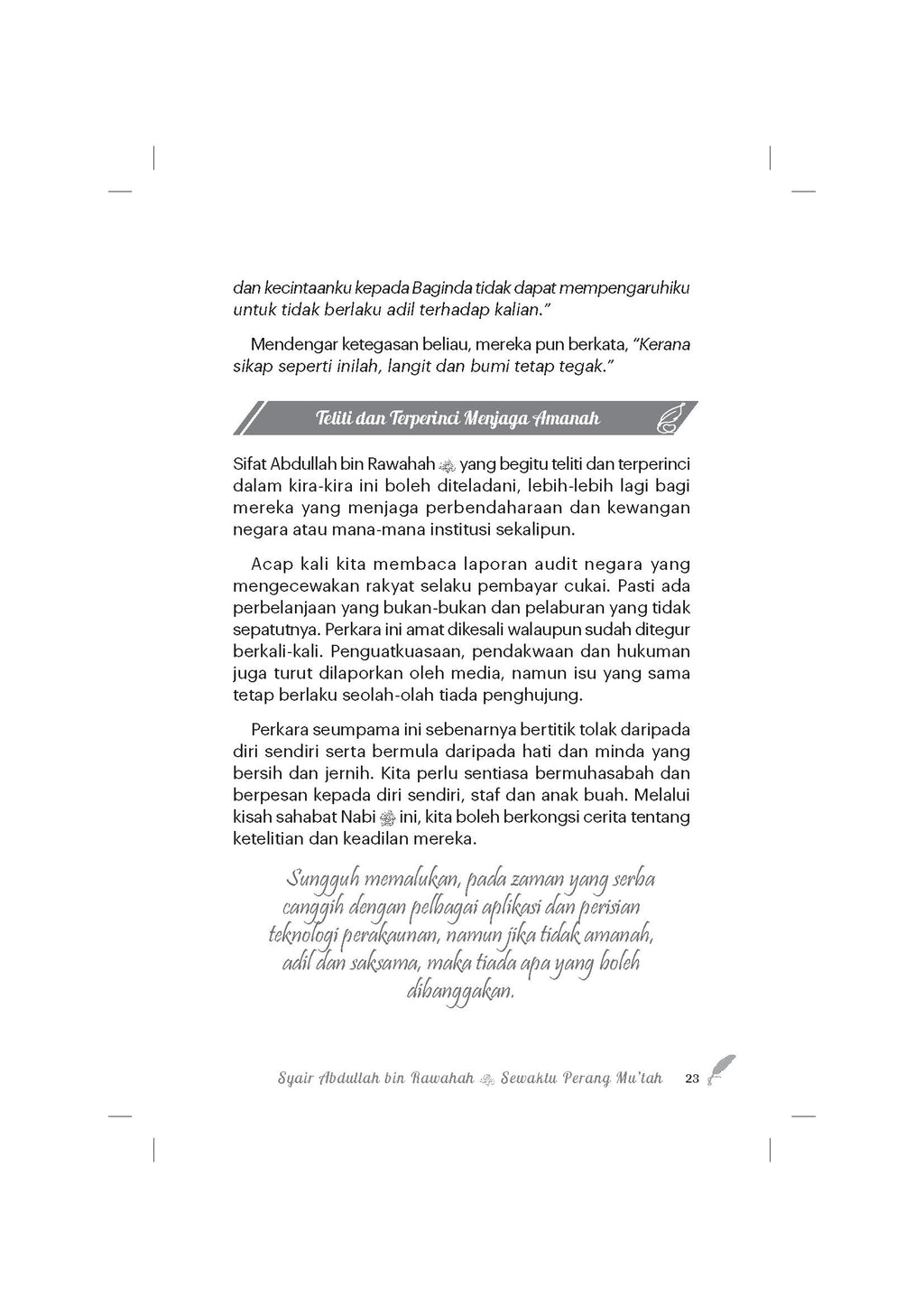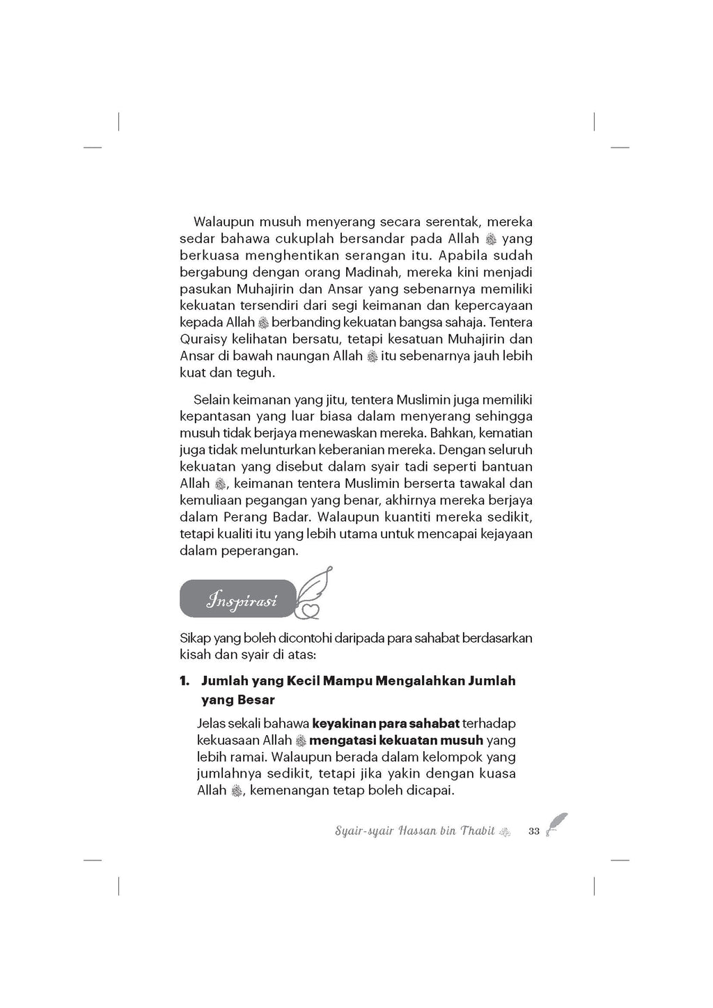 - Buku ini bukan sekadar bahan bacaan, tetapi juga sumber motivasi dan pedoman bagi kita dalam menghadapi pelbagai cabaran hidup.